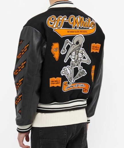 Off-White Eagle Logo Leather Sleeve Varsity Jacket